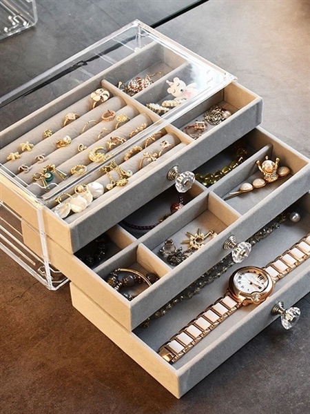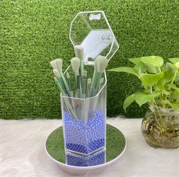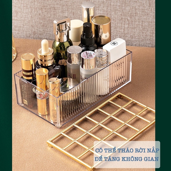 Kệ mỹ phẩm xoay kèm khay son trong suốt
